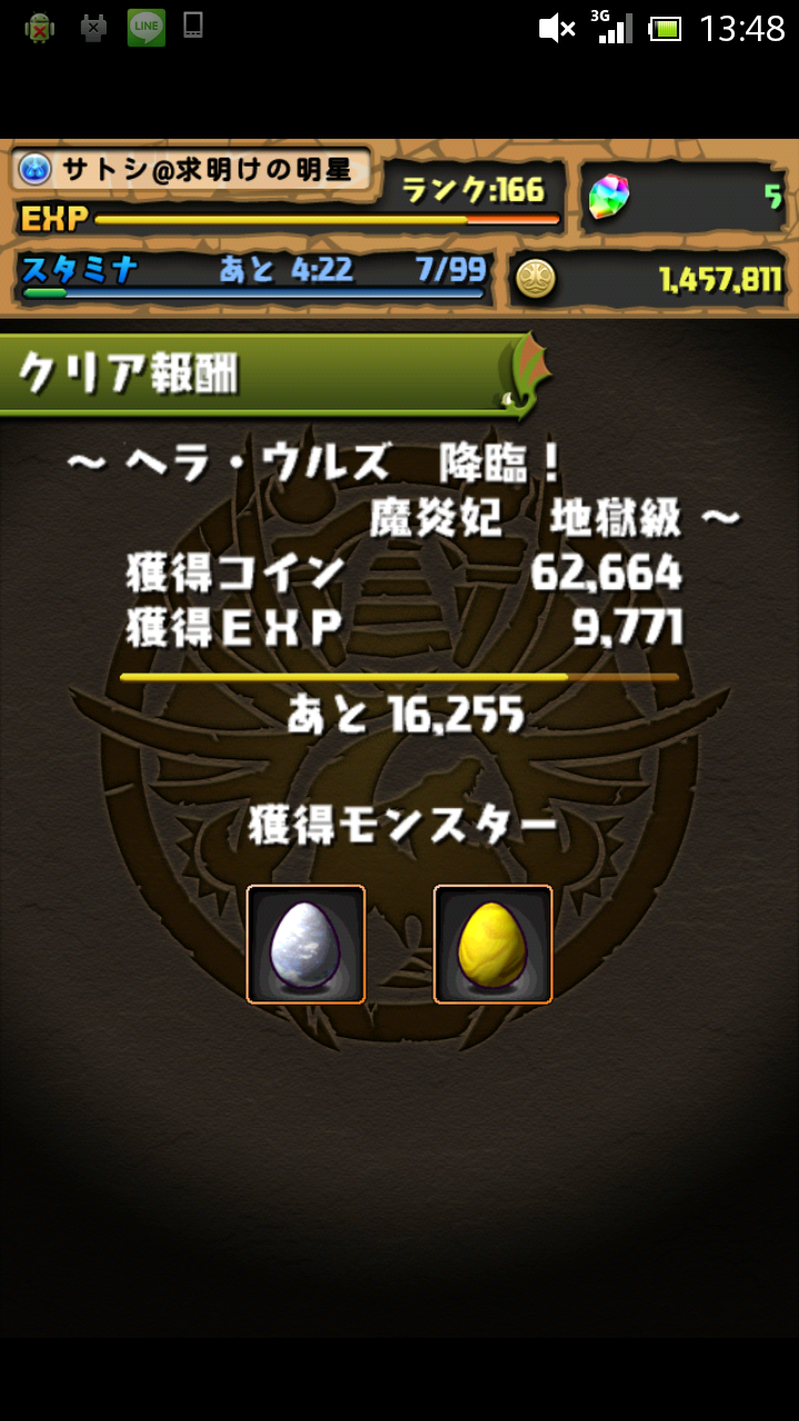 地獄級は今まで一回の挑戦でドロップしていました。